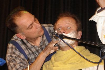 Dieses Mal kam Hanns Meilhamer (besser bekannt in Kombination mit seiner Ehefrau Claudia Schlenger als „Herbert und Schnipsi“) mit seiner Band „Herbert und die Pfuscher“ in den Mareissaal. Als das Quartett zu Beginn auf die Bühne kam - bekleidet mit Blaumann, Maler-Overall, Krachlederner und Hawaii-Hemd – konnten die Besucher schon erahnen, daß dies kein „normales“ Konzert werden würde. Mit ausgeprägter Spielfreude jagten sie durch Jazz, Blues, alte Schlagerschnulzen, Bayerisches, Österreichisches und durch den Mareissaal. Dabei führte „Herbert“ in bekannter Manier durch das Programm und man konnte in den Überleitungen fantastische Geschichten aus dem Leben der Band erfahren. Hier blieb es allerdings dem Publikum überlassen, alles zu glauben oder nicht, wie etwa die Erzählung über die Nöte des „Finanzbeamten“ Karl Burgstaller (Schlagzeug), Pikantes aus dem Leben eines „Pfarrers“ in Oberösterreich (Markus Peitli, Kontrabaß), über Kindheitserinnerungen des kleinen Hannsi Meilhamer oder die Reinkarnationsberatung bei Pianist Hein Kraller, der als wiedergeborener Aboriginee eigentlich nur noch Digeridoo spielen möchte.